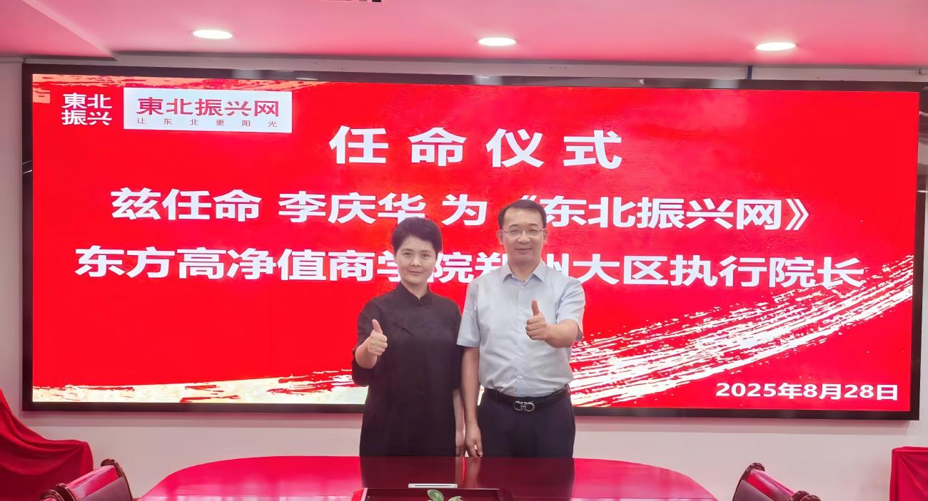 10月8日,《东方高净值商学院》北京管理中心与上上器玻璃制品(霸州)有限公司签署战略合作协议,共同打造《东方高净值·上上器空间》。8月28日,经《东北振兴网》北京总部和《东方高净值商学院》北京管理中心共同研究决定,任命李庆华女士为《东北振兴网》东方高净值商学院郑州大区执行院长,主要负责郑州大区团队的搭建、商学院企业家会员招募和开办高净值企业家总裁班等相关工作。《东北振兴网》总裁陈恳在北京出席了签约仪式和李庆华女士的任命仪式。李庆华,山东烟台招远市人。上上器水晶品牌创始人,政企资源转化顾问,知识产品优化专家。