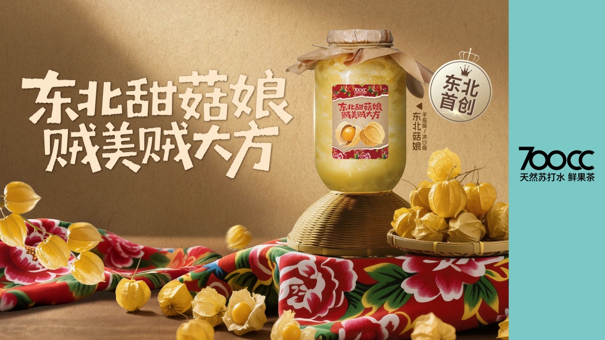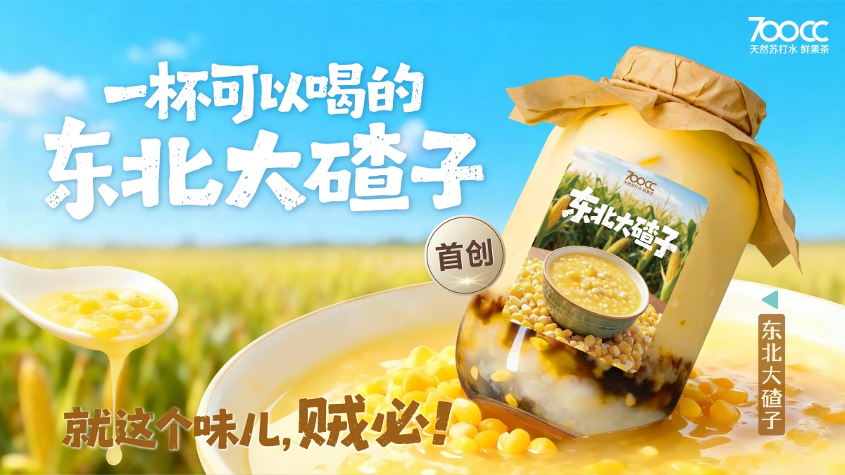 如果你问700CC有什么不同,答案藏在每一杯的细节里。这里没有复杂添加,只有天然苏打水的清润、鲜果的饱满与茶底的纯粹。更特别的是,品牌根植东北,把这片黑土地的馈赠化作一杯杯有记忆点的风味——黄桃的香甜、菇娘的独特香气、南果梨的清润、大碴子的质朴嚼感,都被巧妙融入茶饮中。这不仅是一张“东北风味地图”,更是用当代茶饮语言,让本土食材焕发新生的创意实践。