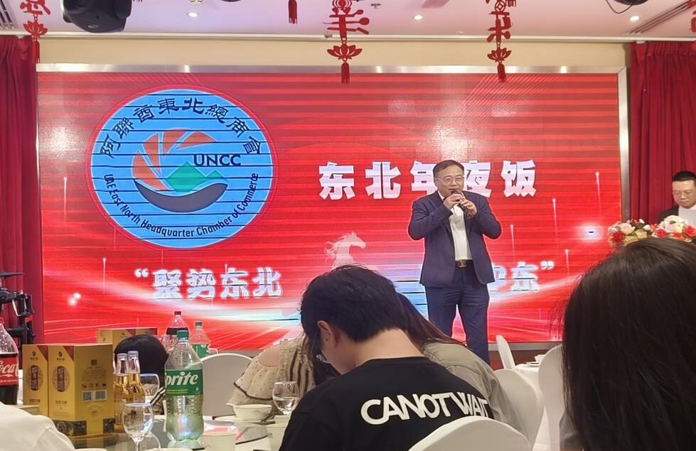 2026年2月16日,阿联酋东北总商会在迪拜颐和园中餐厅成功举办“东北年夜饭”联谊晚宴。此次晚宴由阿联酋东北总商会主办,阿联酋辽宁商会,吉林商会,黑龙江商会,大连商会,沈阳商会共同承办。下午18时,“东北年夜饭”晚宴正式拉开序幕,各商协会会长及中资企业代表等100多位嘉宾光临晚宴现场。主持人宣布2026年年夜饭联谊晚宴正式开始,全体起立并奏响了中华人民共和国国歌。